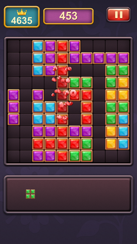 Block puzzle is easy to master. Only Drag and drop gem blocks into 10×10 grid and eliminate blocks by making full rows or columns. Crush as many cubes as possible. If there is no more space to drag extra blocks, it will game over.