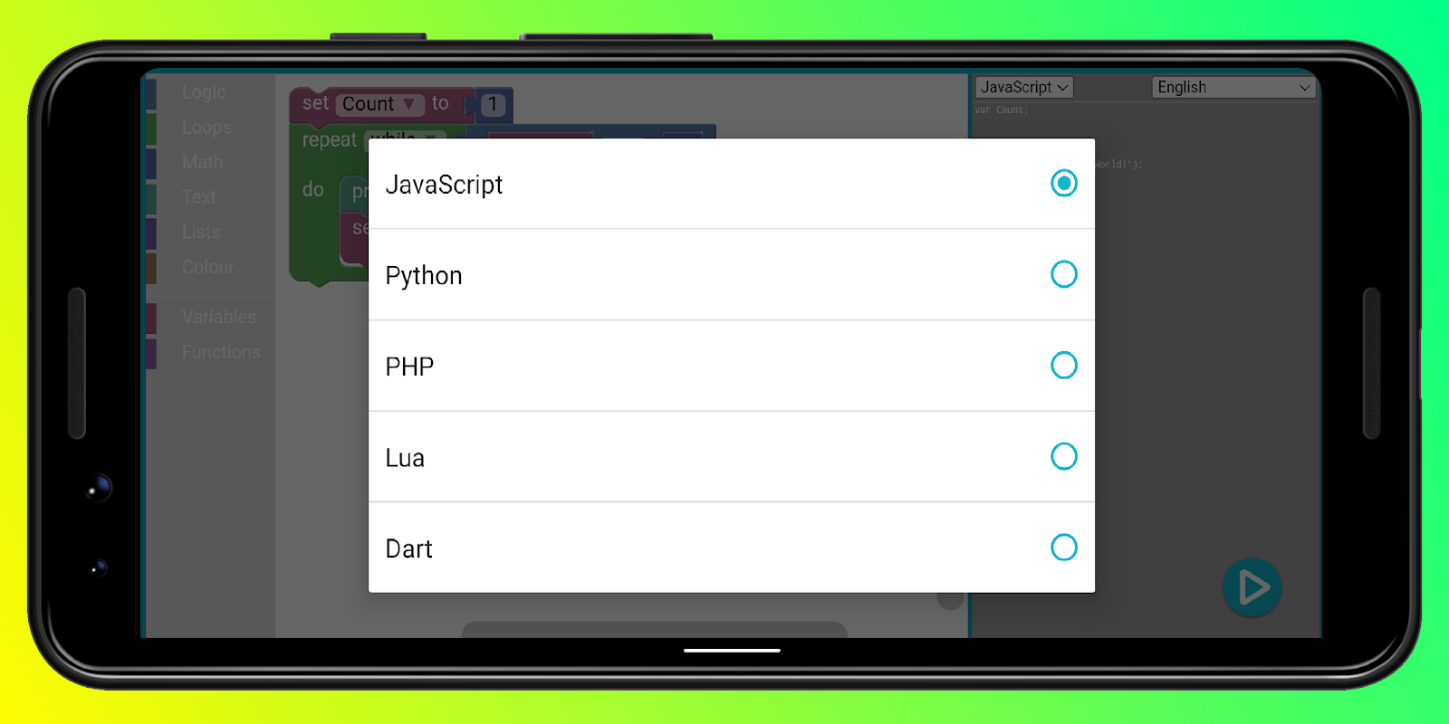 การสาธิตของ blockly บน Android