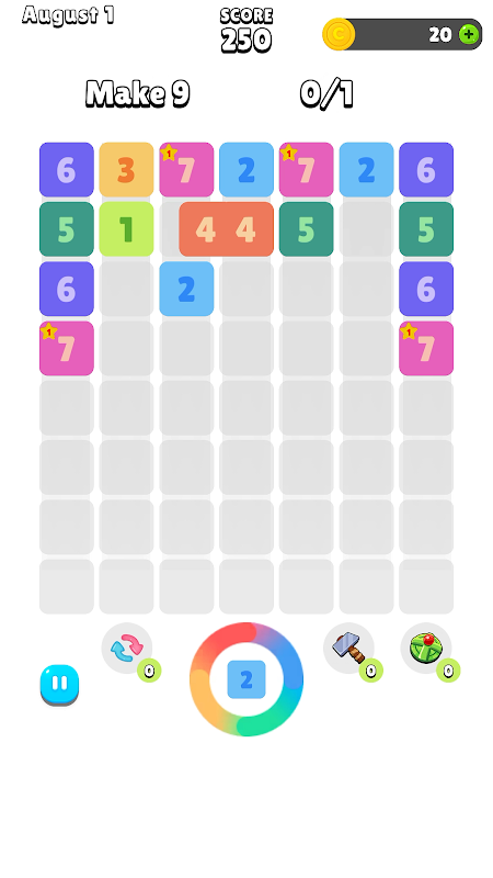 - เมื่อตัวเลขในบล็อกตรงกัน ตัวเลขจะเพิ่มขึ้น
