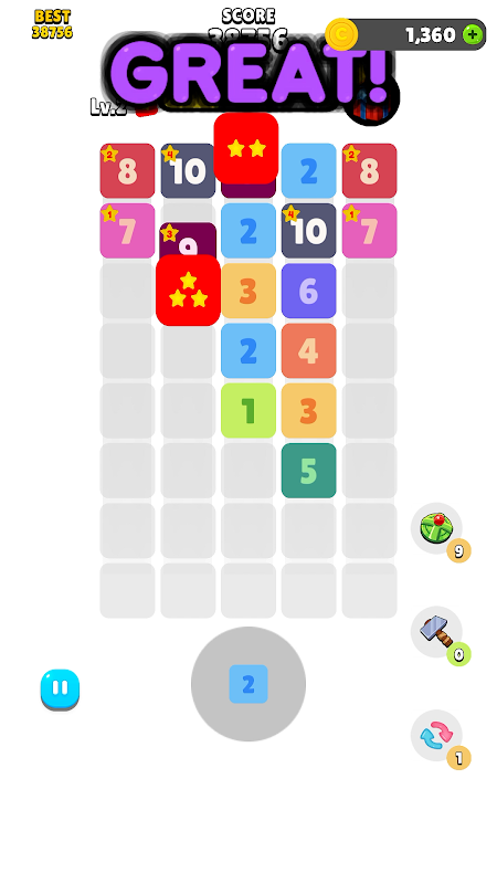 - เมื่อตัวเลขในบล็อกตรงกัน ตัวเลขจะเพิ่มขึ้น