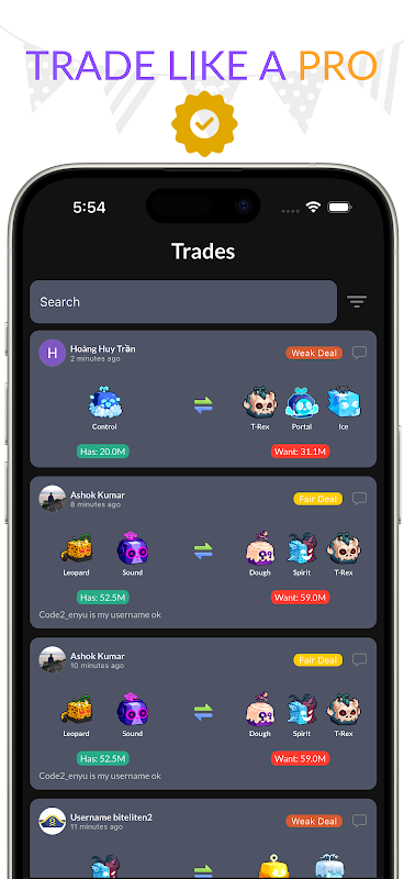 การโพสต์และการแบ่งปันการซื้อขาย: สร้างการซื้อขายผลไม้ Blox ของคุณด้วยไอเทมสูงสุด 4 ต่อ 4 และโพสต์โดยตรงภายในแอปเพื่อให้ผู้ค้าผลไม้ Blox รายอื่นเห็น คุณยังสามารถแชร์การซื้อขายของคุณนอกแอพบนแพลตฟอร์มโซเชียล เช่น Facebook, Twitter หรือ WhatsApp เพื่อรับข้อเสนอเพิ่มเติมและปิดดีลได้เร็วขึ้น