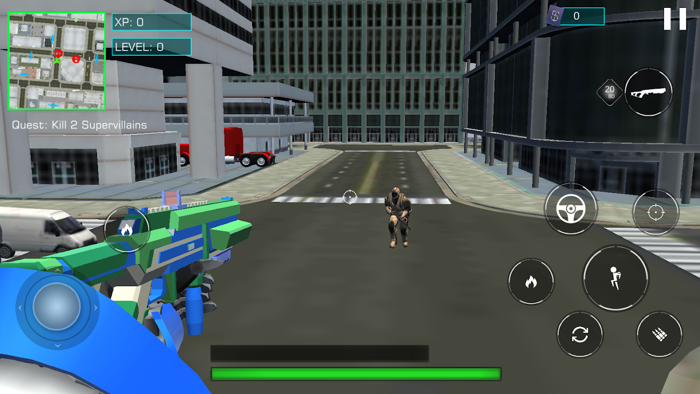 by roaming in the city you can find different cars trucks buses to transform to and you can eather chill and have a good time in the city or ran over the supervillains andsave the city .