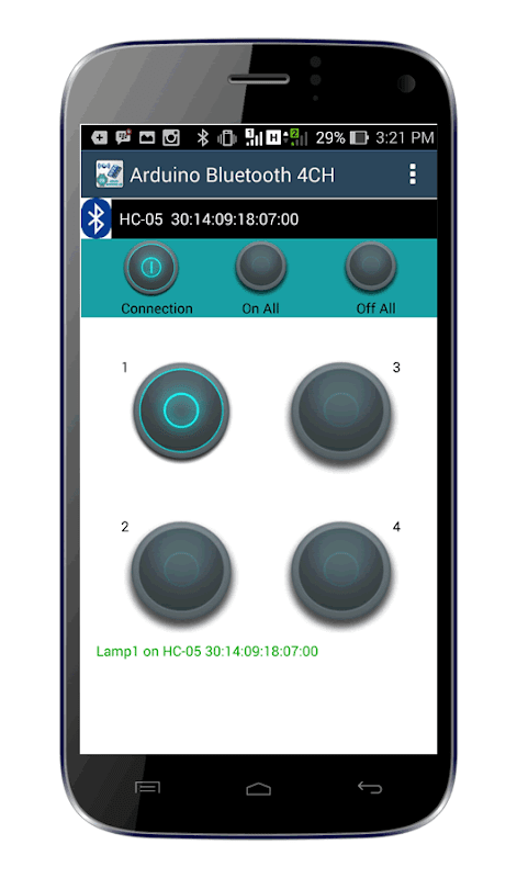 Android app to control 4 channel relay modul with Arduino via bluetooth