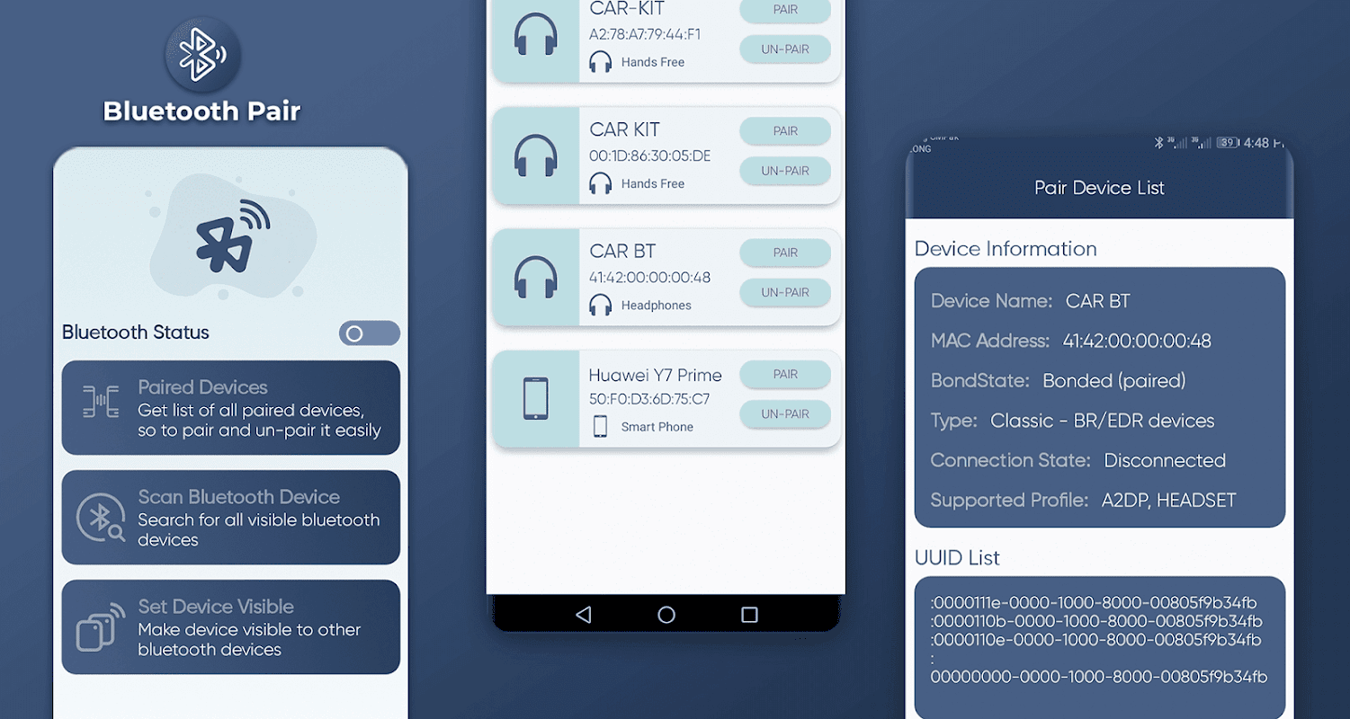 Bluetooth pair is the best tool that will help you to connect easily to your most used bluetooth devices. Bluetooth pair app is also the best bluetooth scanner app that find all nearby devices easily and pair to them very easily. You can easily manage all your paired bluetooth devices and also unpair device that you don’t need it any more.