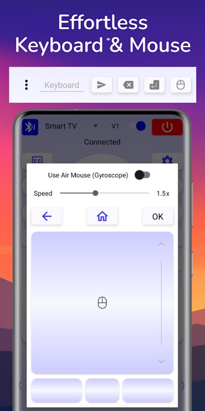อัปเกรดประสบการณ์การควบคุมระยะไกลของคุณและทำให้การตั้งค่าความบันเทิงของคุณง่ายขึ้นด้วยรีโมทคอนโทรล Bluetooth พร้อมรองรับคีย์บอร์ด ดาวน์โหลดแอปทันทีและควบคุมอุปกรณ์ของคุณได้อย่างเต็มที่ด้วยการแตะเพียงไม่กี่ครั้ง ทักทายกับความสะดวกสบายและบอกลาความยุ่งเหยิงของรีโมทหลายตัว