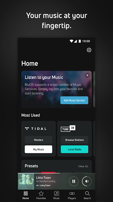 พร้อมใช้งานสำหรับอุปกรณ์ Android แอป BluOS Controller คือทุกสิ่งที่คุณต้องการในการตั้งค่า ควบคุม และฟังเพลงของคุณบนระบบเพลงไร้สายที่รองรับ BluOS