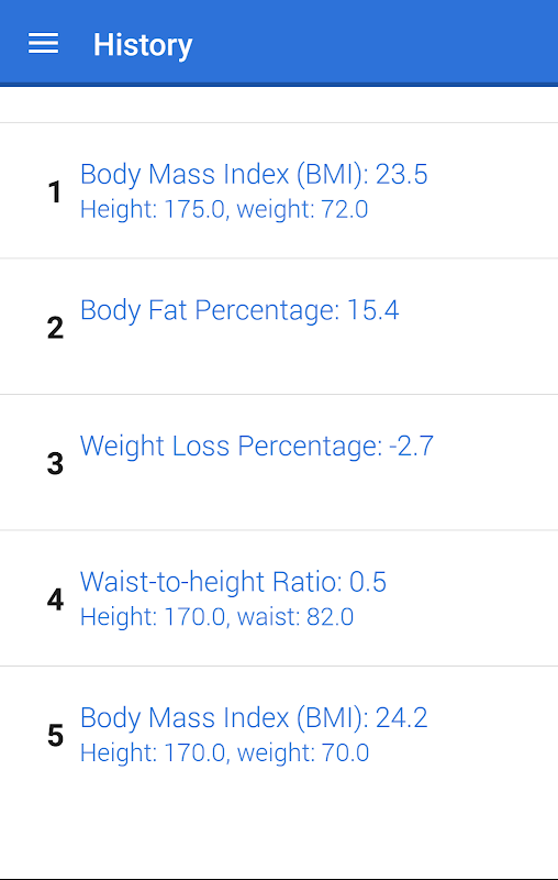 BMI Calculator มีการคำนวณดัชนีมวลกายน้ำหนักอัตราส่วนความสูงเปอร์เซ็นต์ไขมันในร่างกายร้อยละการสูญเสียน้ำหนัก