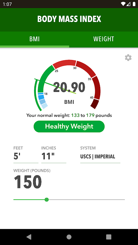 - มาตรวัดแบบโต้ตอบและเคลื่อนไหวที่อัปเดตแบบเรียลไทม์ขณะที่คุณปรับน้ำหนัก ทำให้มองเห็น BMI ปัจจุบันของคุณได้ง่าย
