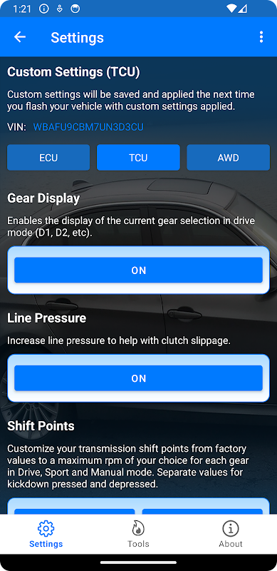 (TCU) คุณสามารถปรับเกียร์อัตโนมัติ (ZF 6HP/8HP) ได้โดยใช้การตั้งค่าที่ปรับแต่งได้รวดเร็ว - ปรับเปลี่ยนทั้งแบบออฟไลน์และบนเว็บไซต์ ตลอดจนความสามารถในการค้นหาและใช้แผนที่ที่ปรับแต่งไว้ล่วงหน้าซึ่งอาจรองรับซอฟต์แวร์เวอร์ชันเฉพาะของคุณ