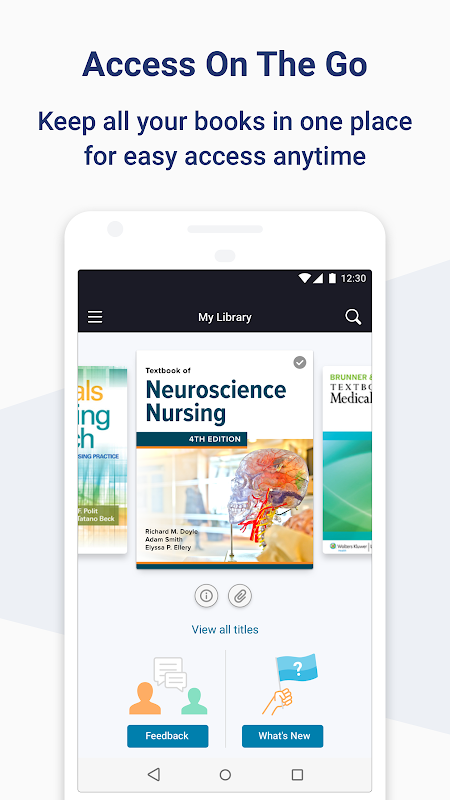 ด้วย Bookshelf คุณสามารถเพลิดเพลินกับประสบการณ์การศึกษาที่ครอบคลุมซึ่งเน้นด้านดิจิทัลเป็นหลักจากโทรศัพท์หรือแท็บเล็ต Android ของคุณ เข้าถึงหนังสือเรียน VitalSource ทั้งหมดของคุณและศึกษาได้ทุกที่ทุกเวลา