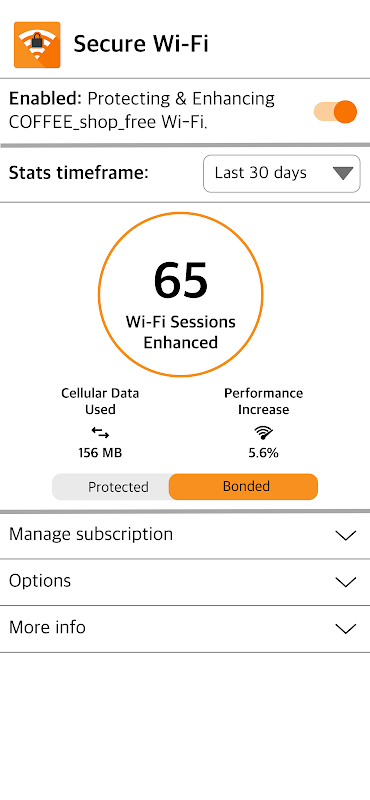 Boost Mobile Secure Wi-Fi จะเข้ารหัสข้อมูลของคุณโดยอัตโนมัติเมื่อคุณเชื่อมต่อกับเครือข่าย Wi-Fi ทันทีที่ตรวจพบเครือข่าย Wi-Fi Secure Wi-Fi จะเปิดใช้งานการเชื่อมต่อ VPN เพื่อให้แน่ใจว่าไม่มีใครสามารถขโมยรหัสผ่านของคุณ จี้การเข้าสู่ระบบของคุณ หรือตรวจสอบกิจกรรมของคุณ