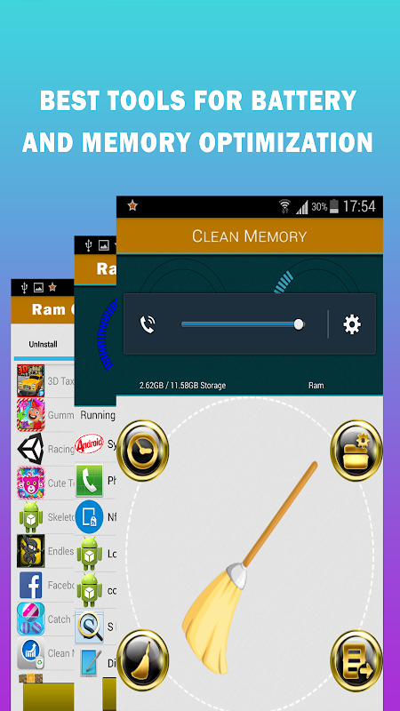 Be ready for the New Best Cache Memory and RAM space clearing App in the market! Increase the performance of your Android device just in one click. The process of restoring your phone’s speed has never been so easy and fast as now. You don´t need to worry about understand complicated technical language; the solution to speed up your mobile is at the touch of a button. Our app not only erases temporary files and caché memory, but it also continues the job collecting RAM errors and threads that could affect your device performance. Your phone overheats while running some apps? This could be caused by low RAM availability! Forget about downloading battery booster, speed boosters and other apps that don’t do what they promise; try now the best Android Opti-mizer without any limited functionality and enjoy the speed of your device as it was brand new!