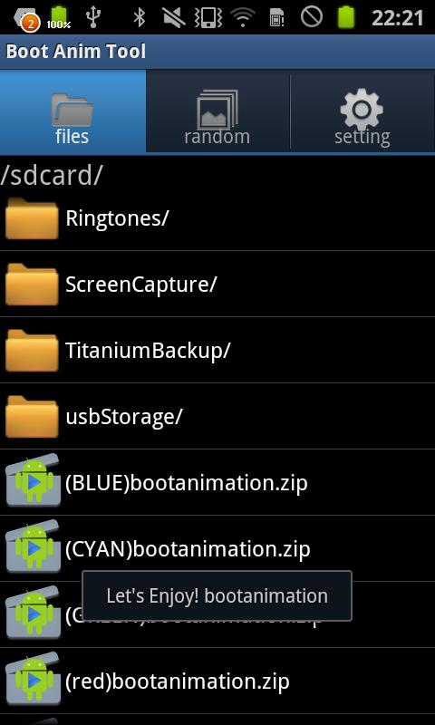 (NOTE) Displays only the playable bootanimation.zip