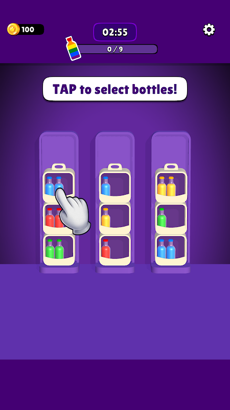 แตะ ลาก และวางขวดเพื่อจับคู่สีและจัดเรียงลงในกล่องที่ถูกต้อง เป้าหมายนั้นง่าย แต่คุณสามารถไขปริศนาแต่ละอันด้วยวิธีที่ฉลาดที่สุดเท่าที่จะเป็นไปได้ได้หรือไม่?