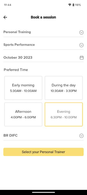คะแนนสะสม: รับคะแนนสะสมสำหรับเซสชั่นการฝึกอบรมและแพ็คเกจที่ซื้อ แลกคะแนนเหล่านี้เพื่อรับเซสชั่นเพิ่มเติมและทดสอบสมรรถภาพโดยตรงผ่านแอพของเรา