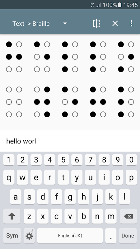 แอปนี้เป็นวิธีที่ง่ายในการแปลงข้อความเป็นอักษรเบรลล์และในทางกลับกัน