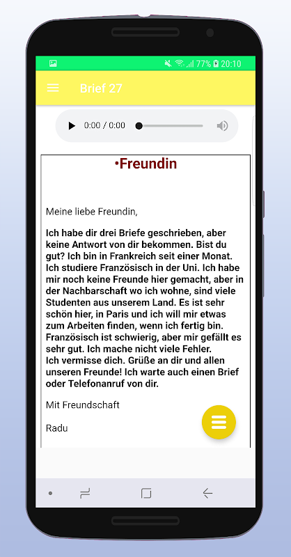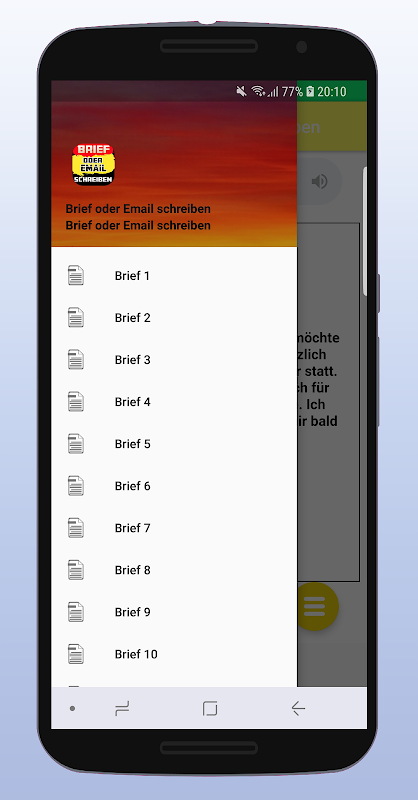 sie können auch mit dieser app jeder Deutsch lernen niveau A1 A2 B1 B2. Sie schreiben einen brief einfach und richtig mit dieser app schreiben zur Prüfung Zertifikat Deutsch B1