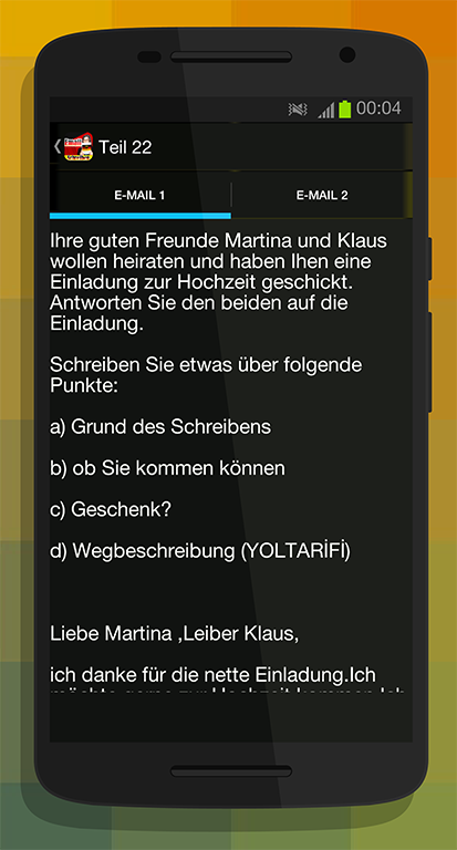 sie können auch mit dieser app jeder Deutsch lernen niveau A1 A2 B1 B2. Sie schreiben einen brief einfach und richtig mit dieser app schreiben zur Prüfung Zertifikat Deutsch A1