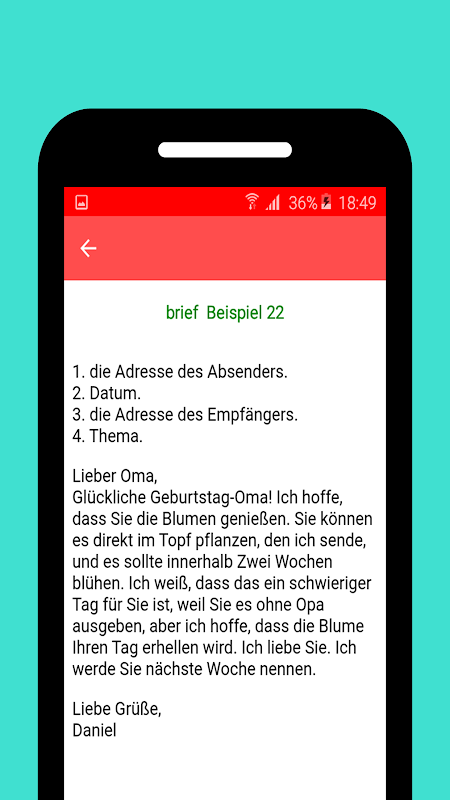 lerne, wie man Briefe auf Deutsch schreibt und verbessere deine Fähigkeiten Diese App hilft dir zu lernen, wie man Briefe in der Schule und in den Prüfungen schreibt.