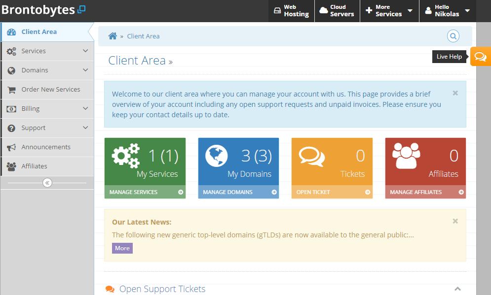 • Send your support Tickets from here rather than from outside of the login so they will all be saved in your client area email account for you.