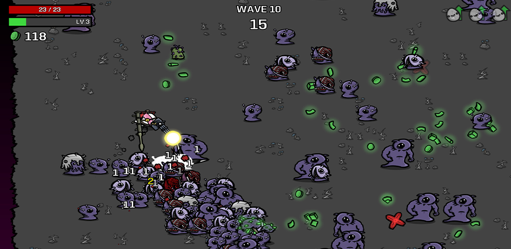 ✅ Collect materials to gain experience and get items from the shop between waves of enemies.