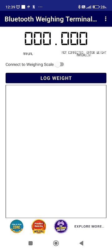 แอปนี้เป็นเครื่องมือง่ายๆ ที่เชื่อมต่อโทรศัพท์ของคุณเข้ากับเครื่องชั่งน้ำหนักหรือเครื่องชั่งน้ำหนัก แทนที่จะต้องจดบันทึกตัวเลข แอปจะอ่านน้ำหนักโดยตรงและบันทึกให้คุณ เหมาะอย่างยิ่งสำหรับการติดตามสิ่งของหนัก น้ำหนักเพื่อสุขภาพ หรือสิ่งอื่นๆ ที่คุณต้องวัดบ่อยๆ