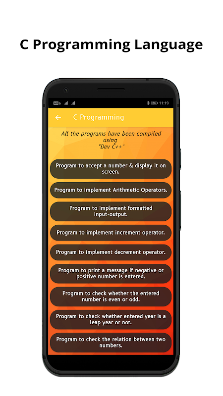 ภาษาทั้งหมดเหล่านี้จะช่วยคุณในการสร้างฐานที่แข็งแกร่งในการเขียนโปรแกรม ด้วยความช่วยเหลือของแอพนี้คุณสามารถเข้าถึงโปรแกรมก่อนที่อาจารย์ของคุณจะสอนคุณ ดังนั้นคุณสามารถเรียนรู้ด้วยตนเองได้ทุกที่ทุกเวลา