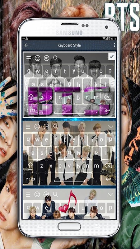 BTS’ is a popular keyboard theme with BTS’ Army fans background. BTS’ is designed for people who like colorful. This lovely keyboard will make your Android phone unique and cool.