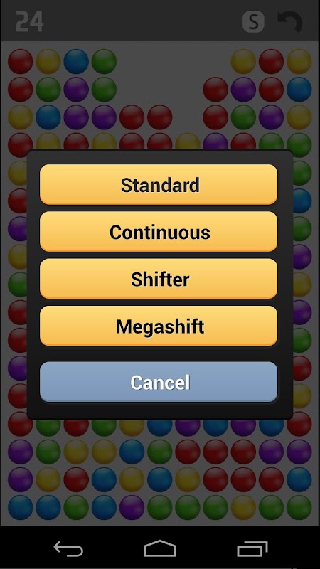 The player has four unique game styles to choose from, including Standard, which is described above. The other game styles are Continuous, Shifter and MegaShift.