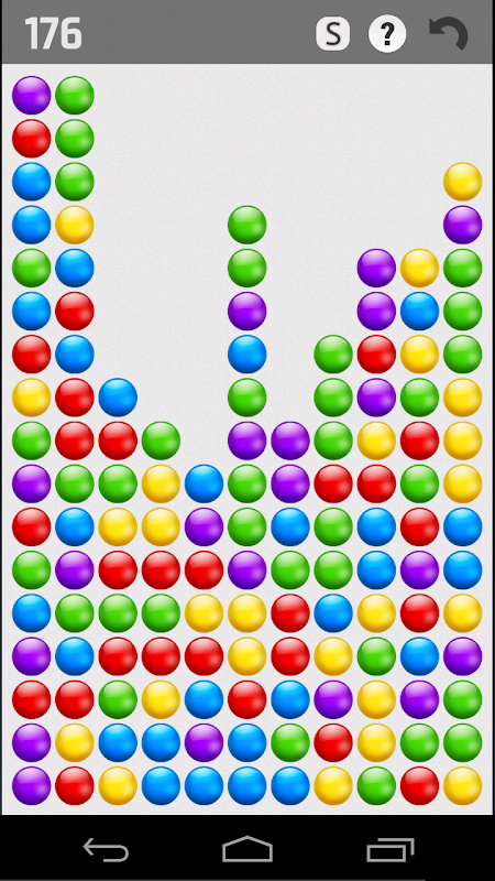 The game board consists of a screen of differently-colored balls arranged in a matrix. There are five different colors: red, blue, green, yellow and purple. You click on any two or more adjacent similarly-colored balls to eliminate them from the matrix, earning an appropriate number of points in the process. The more balls eliminated at once, the higher the points added to the player's score.