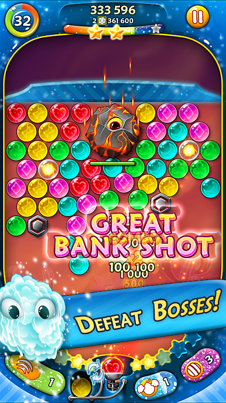 เกมยิงฟองสบู่ที่จะทำให้คุณติดใจนี้มีเกาะอันน่าทึ่งถึง 6 เกาะพร้อมด่านนับร้อยและฟองสบู่ที่มีเอกลักษณ์เฉพาะตัวมากกว่า 30 แบบ คุณจะได้สนุกสุดเหวี่ยงไปกับระเบิดที่บินได้ ลูกไฟ และบูสเตอร์ใหม่ทรงพลังอื่นๆ จะช่วยให้คุณเอาชนะบอสและความท้าทายสุดเจ๋งอื่นๆ ได้ในโหมดเกมที่น่าตื่นเต้น 4 โหมด