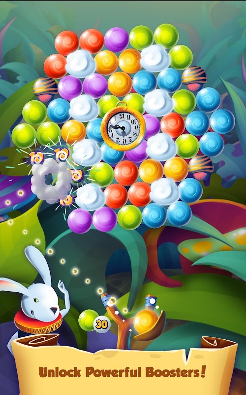 Alice in wonderland is one of the most favorite fairy tales in the world. Follow the bunny into the Wonderland to explore a funny puzzle levels and get a help from the Cat on a quest to pop all bubbles.