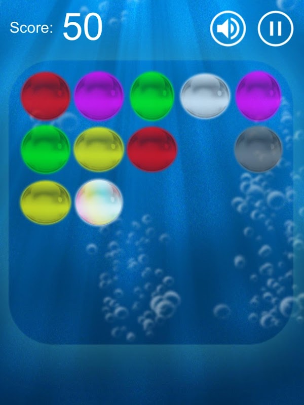 When two or more bubbles with the same color touch eachother, they pop out.