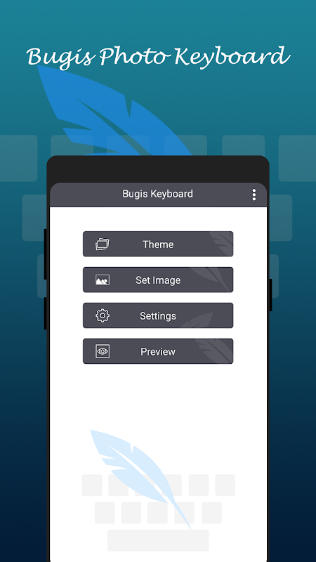 With Bugis Keyboard you can write all Bugis Alphabets, letters and words. Bugis keyboard is the easiest keyboard to write in Bugis language, it is providing you reading, writing and sharing text in Bugis language.