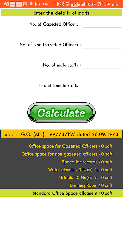 คำนวณพื้นที่ที่จัดสรรให้หน่วยงานราชการตาม GO 199/73 / PW dt 26/09/1973