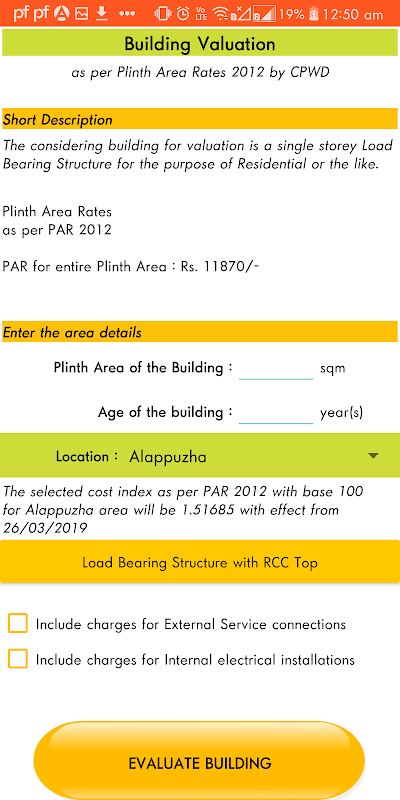 ประเมินอาคารตามบรรทัดฐาน CPWD ด้วย PAR 2012 และดัชนีต้นทุนสำหรับแต่ละพื้นที่ในรัฐเกรละ