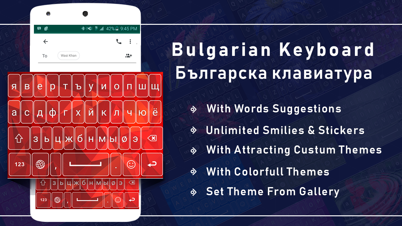 If you want to customize your keyboard theme with colorful emojis, high contrast layout then congratulations, you are on the right spot; we are here to provide photo keyboard to transform your phone with new colorful attractive layout. Personalized keypad of your keyboard with color sticker & themes color is the keyboard themes free. English Bulgarian keyboard with colorful functionalities like colorful background with new keyword is the new free keyboard design for galaxy smart phones on Google play store. This multi color theme keyboard is new typing experience for you guys.
