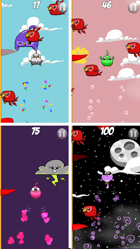 ช่วยให้ Bumpy Birds บินได้! แตะที่หน้าจอเพื่อกระพือปีกและบินให้สูงที่สุดเท่าที่คุณจะทำได้! ระวัง Bully Birds กลืนผีเสื้อสีทองเพื่อเพิ่มพลัง! คุณจะบินได้สูงแค่ไหน?