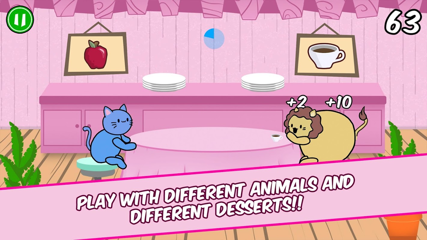 เกมน่ารักน่ารัก เล่นง่ายมาก: เลื่อนนิ้วของคุณไปทางซ้าย/ขวาเพื่อเสิร์ฟอาหารน่ารักที่ถูกต้องให้กับสัตว์น่ารักของคุณ วิธีนี้จะทำให้พวกมันอ้วนขึ้น ทิ้งอาหารที่พวกมันไม่ชอบโดยเลื่อนนิ้วของคุณขึ้น/ลง คว้าพาวเวอร์อัปเพื่อเพิ่มพลังให้คุณ! ทำคะแนนให้สูงที่สุดเพื่อที่คุณจะได้อยู่ใน 5 อันดับแรกของโลก!! เรามีผู้เล่นที่แข่งขันกันอย่างดุเดือดมากจนถึงตอนนี้!! คุณจะแซงหน้าพวกเขาได้หรือไม่?