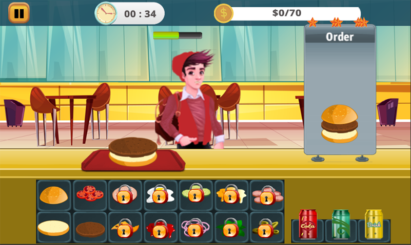 Burger Chef Cooking is a cooking and serving simulation game and one of the best free cooking games .