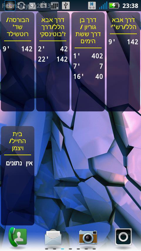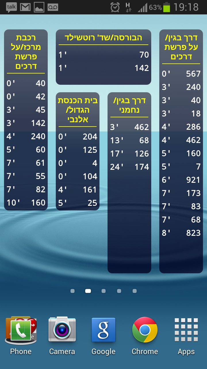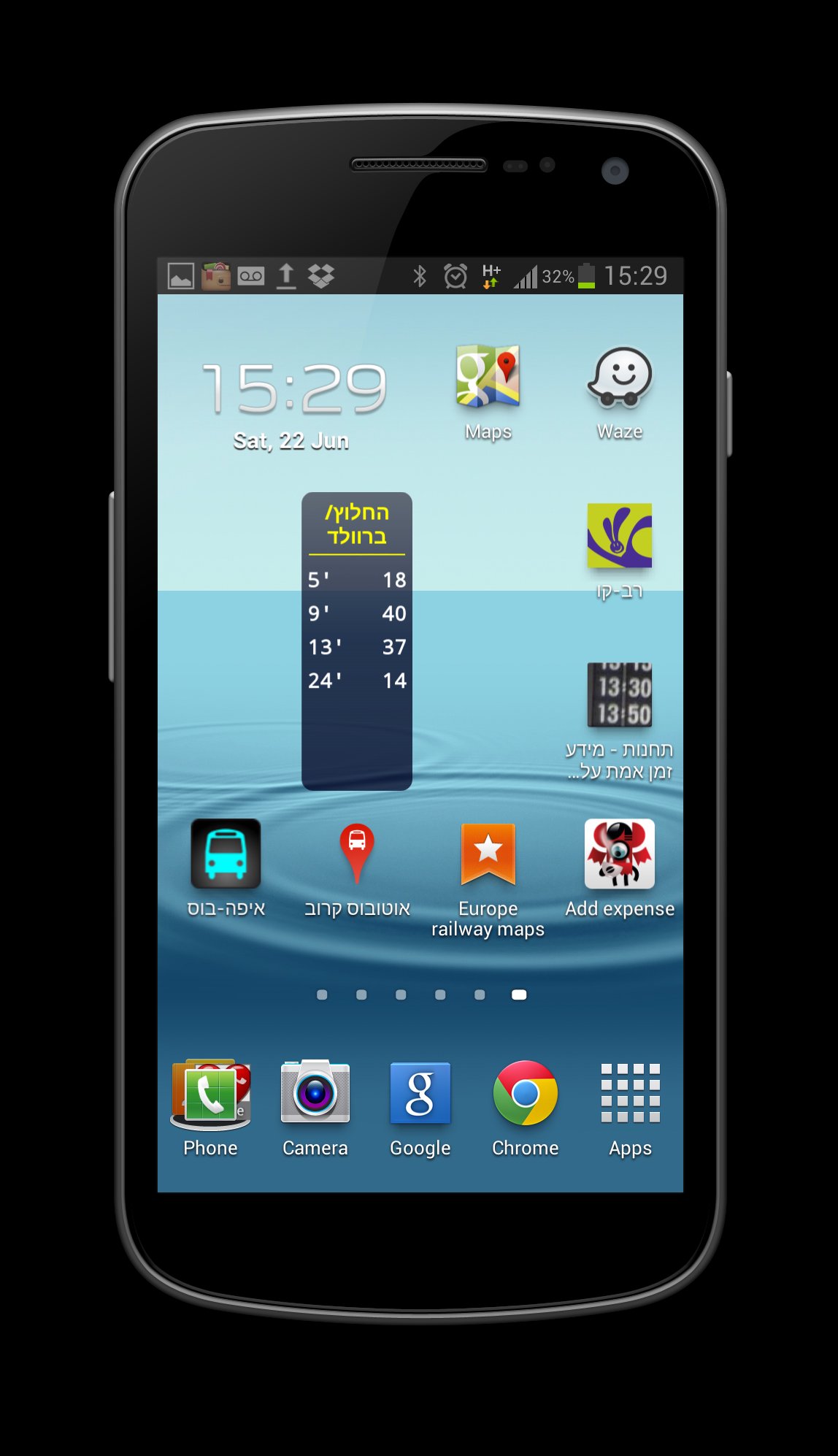 The bus times are updated every thirty seconds according to GPS info provided by the Ministry of Transport. You can create widgets of the stops next to your home, work or school, and you will see the next buses which pass through your favorite stops directly on the home screen, without opening any app.