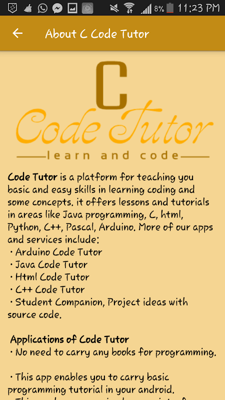 Learn and Code in C, Master C programming. This app is aimed at helping students taking the Programming Course, and learning C programming.