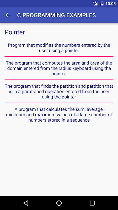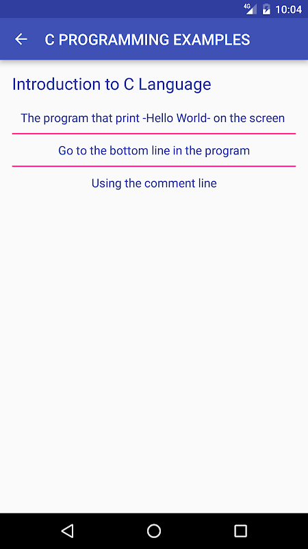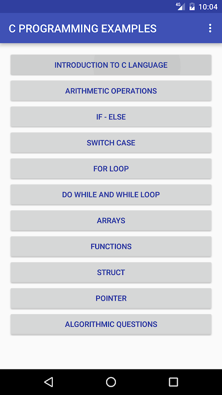 C PROGRAMMING SAMPLES is an application which is composed of C examples for those who are new to C language and those who want to improve themselves with examples. The application is separated by C subjects, many examples of each topic are available and this number will increase with new samples. Each sample screen output is absolutely available, you can experiment by yourself and check out the application from the screen. In practice, if you have a problem, wish, suggestion or something you see wrong, you can send an e-mail from "contact us" and an absolute return will be made. Application developers are university students, you can support by clicking on the ads. Optionally, the application will be developed for different software languages.