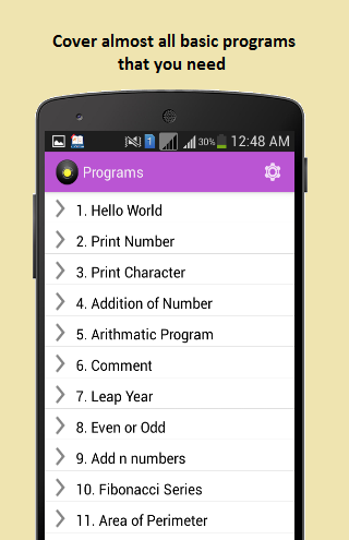 This is only the app where you can get syllabus wise tutorials, 70+ Programs, 90+ FAQ's.
