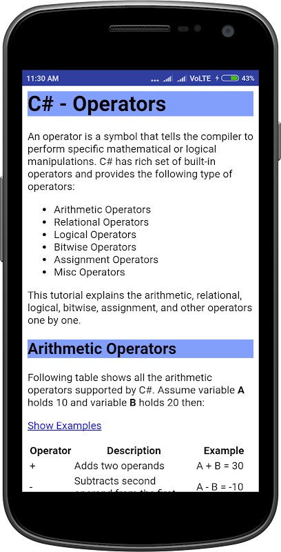 C# Tutorial app collections of Categories are below and provide all this Topic