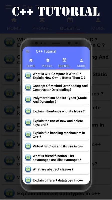 C++ Tutorial A complete Guide is compatible with all android devices. Download and learn whatever you want to learn about C++ programming.
