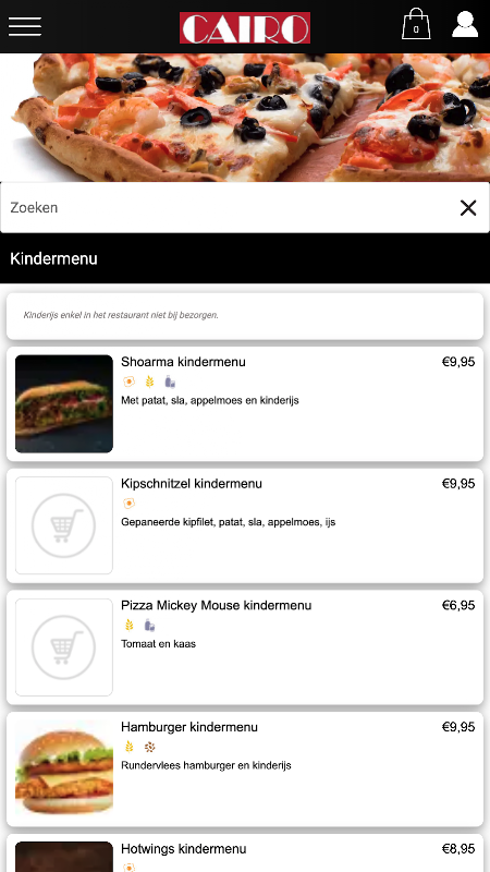 แอปพลิเคไคโรถูกออกแบบมาให้สามารถสั่งซื้อสินค้าได้ง่ายและรวดเร็วโดยวิธีการของเมนูง่ายๆ ในเมนูที่คุณสามารถเลือกที่จะรวมถึงอาหารที่เป็นที่นิยม แต่คุณยังสามารถวาดขึ้นเมนู