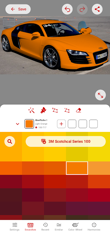 « CAL เลือก»ทันทีที่พบเหมือนกันหรือโทนสีที่คล้ายกันอยู่ในช่วงสี specifiers สีเพิ่มเติมเช่น NCS และ RAL อาจถูกดาวน์โหลดลงใน App
