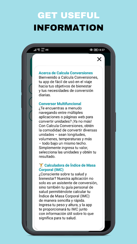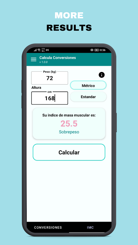 ยินดีต้อนรับสู่การคำนวณ Conversions และ BMI ซึ่งเป็นคู่หูแบบมัลติฟังก์ชั่นที่ทำให้การแปลงหน่วยเป็นเรื่องง่าย และช่วยให้คุณติดตามดัชนีมวลกาย (BMI) ด้วยวิธีที่ง่ายและเป็นมิตร