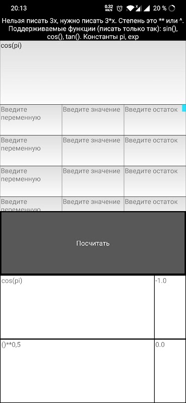 exp (x) - เพิ่มจำนวน "e" เป็นยกกำลัง x, pi - จำนวน pi
